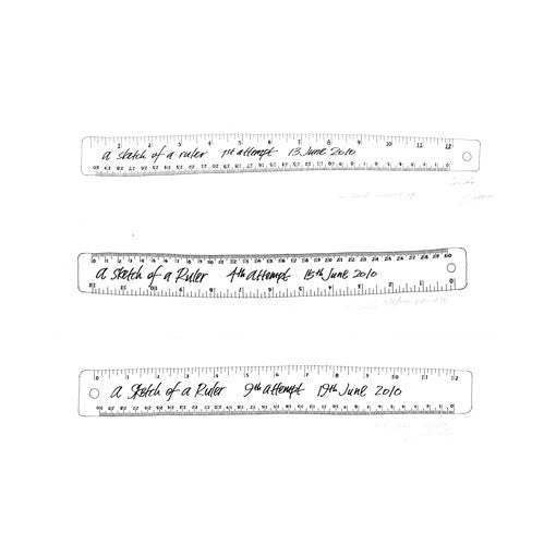 “The concept questions the basic assumption of a ruler as an accurate measuring instrument for an object. In this case, it is a measurement of the designer futile attempts at precision and perfection. He wishes to bring back a greater tolerance for imperfection and soul as technology is pulling the other way with measuring precision of near infinite decimal points. There were a total of fifteen attempts in sketching the ruler as accurately as possible.”